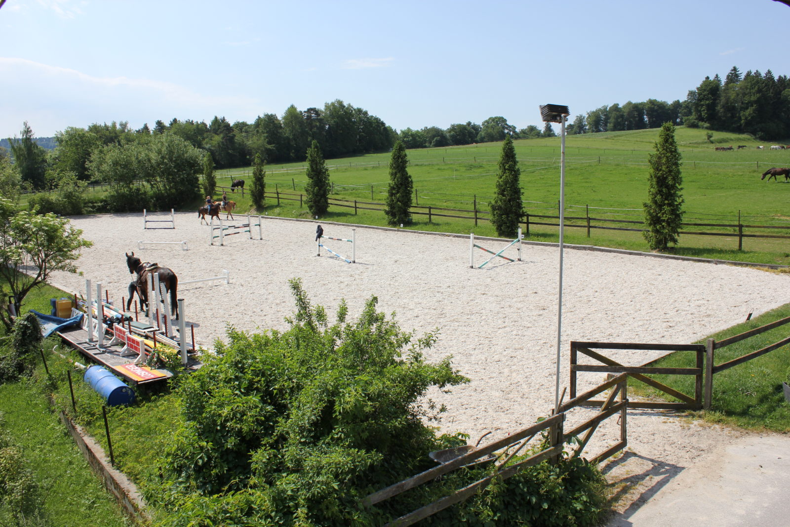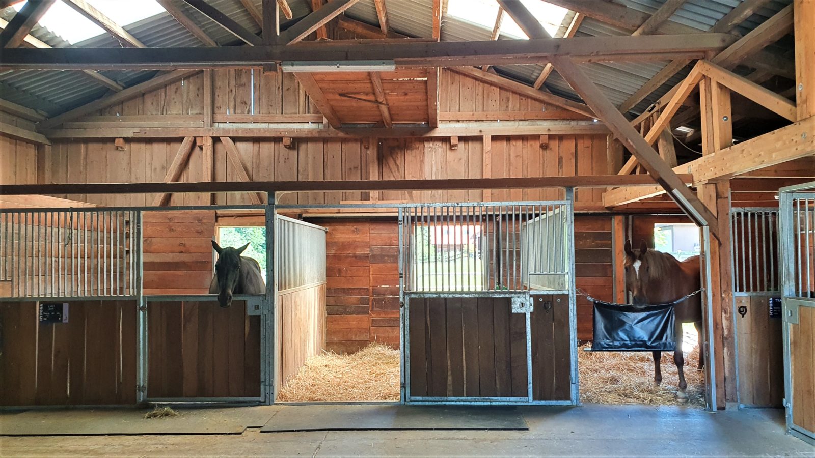 L’ensemble est parfaitement adapté à la retraite, la convalescence ou simplement aux vacances. Tout est également prévu pour un entraînement efficace de votre cheval.
